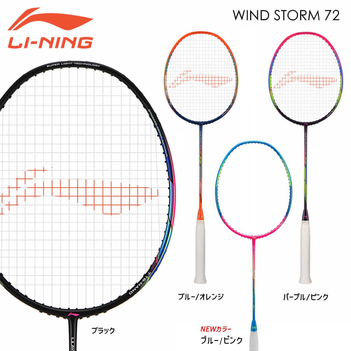 【WS72】ラリー型 WindStorm 72 (WS72) バドミントンラケット リーニン 軽量(6U)